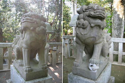 可哀相に 吽形のほうは 後ろ足が無くなり セメントで修理してあります